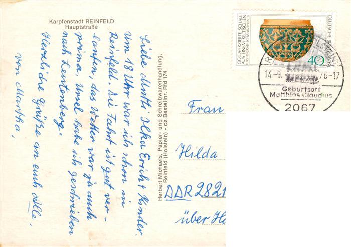 73887615 alte Postkarte Reinfeld Holstein Hauptstrasse postalisch gelaufen Erhaltung siehe scans [FriedD77] KatCode: 11110001062061