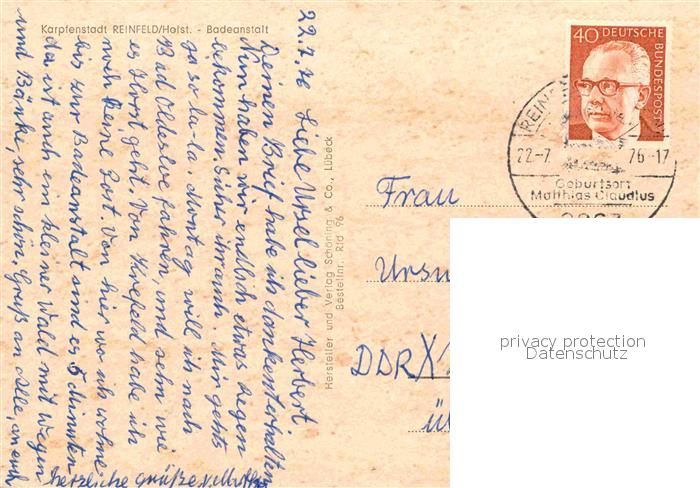 72670183 alte Postkarte Reinfeld Holstein Karpfenstadt Freibad postalisch gelaufen Erhaltung siehe scans [LiesaD40] KatCode: 11110001062061