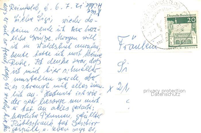 73669941 alte Postkarte Reinfeld Holstein Kurheim Am Herrenteich Promenadenbruecke Holstenhof postalisch gelaufen Erhaltung siehe scans [WerneD78] KatCode: 11110001062061