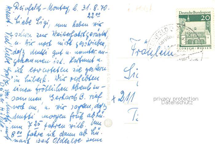 73669895 alte Postkarte Reinfeld Holstein Kurheim Herrenteich Pastorat Liegehalle Kirche Huenengrab Holstenhof Altenheim Rathaus postalisch gelaufen Erhaltung siehe scans [WerneD78] KatCode: 11110001062061