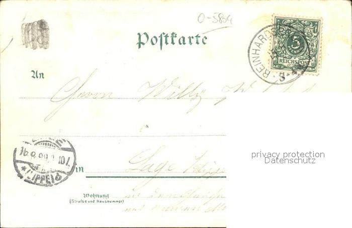 42528802 alte Postkarte Reinhardsbrunn Schloss bei Sonnenaufgang und im Mondschein Teich Hirsch Reh Litho postalisch gelaufen Erhaltung siehe scans KatCode: 11110016067019