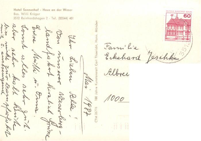 73902961 alte Postkarte Reinhardshagen Hotel Sonnenhof Gastraeume Weserpartie postalisch gelaufen Erhaltung siehe scans [WerneD78] KatCode: 11110006633022