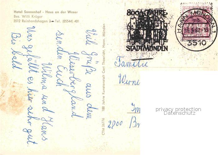 72673073 alte Postkarte Reinhardshagen Hotel Sonnenhof postalisch gelaufen Erhaltung siehe scans [AndreD76] KatCode: 11110006633022
