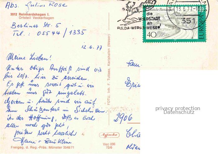 34145184 alte Postkarte Reinhardshagen OT Veckerhagen Fliegeraufnahme postalisch gelaufen Erhaltung siehe scans [WerneD78] KatCode: 11110006633022