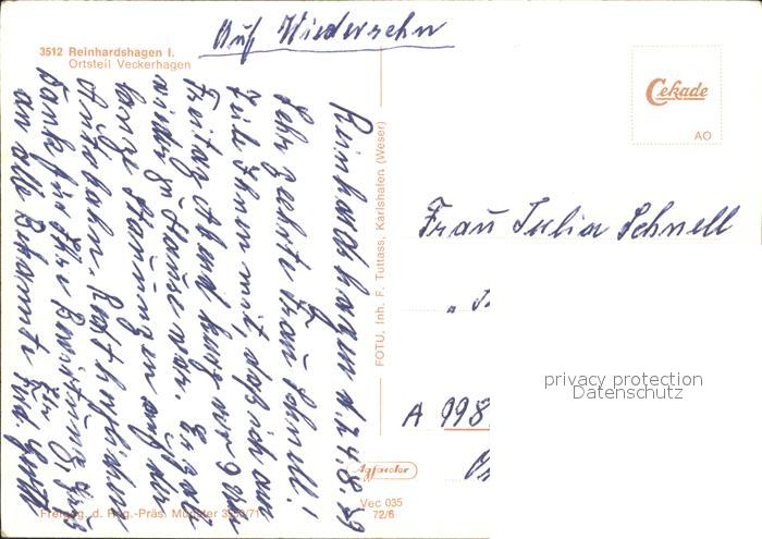 71929862 Reinhardshagen OT Veckershagen Fliegeraufnahme postalisch nicht gelaufen Erhaltung siehe scans KatCode: 11110006633022