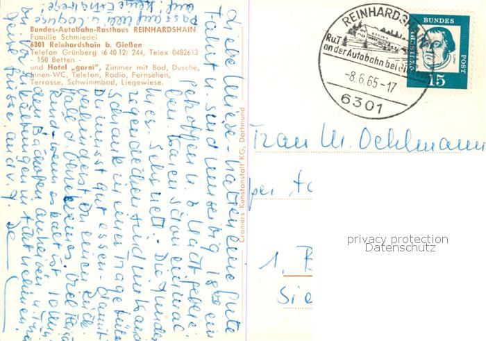 73853823 alte Postkarte Reinhardshain BAB Rasthaus Reinhardshain Fliegeraufnahme postalisch gelaufen Erhaltung siehe scans [WerneD78] KatCode: 11110006531006