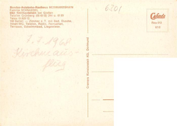 73871322 Reinhardshain BAB Rasthaus Reinhardshain postalisch nicht gelaufen Erhaltung siehe scans [WerneD78] KatCode: 11110006531006