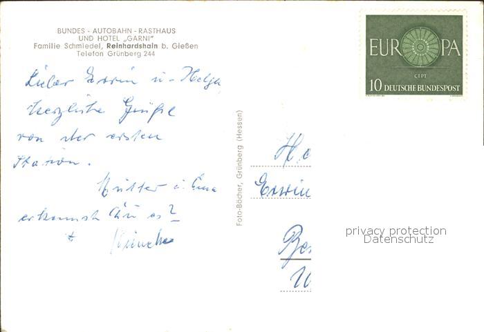 71972413 Reinhardshain Bundes Autobahn Rasthaus Hotel Garni postalisch nicht gelaufen Erhaltung siehe scans KatCode: 11110006531006