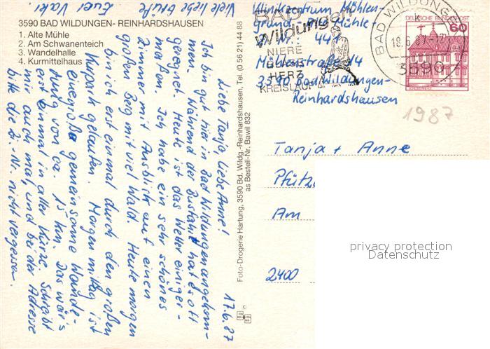 73062986 alte Postkarte Reinhardshausen Alte Muehle Schwanenteich Wandelhalle Kurmittelhaus postalisch gelaufen Erhaltung siehe scans [FriedD77] KatCode: 11110006635003