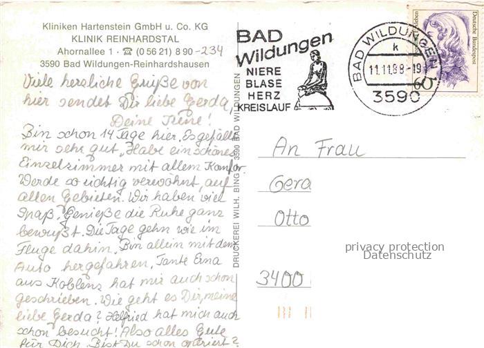 74044225 alte Postkarte Reinhardshausen Bad Wildungen Kliniken Hartenstein und Reinhardstal Pool Hallenbad Speisesaal postalisch gelaufen Erhaltung siehe scans [WerneD78] KatCode: 11110006635003