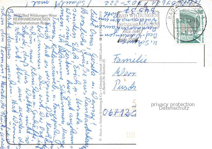 74043982 alte Postkarte Reinhardshausen Bad Wildungen Waldsanatorium Roth postalisch gelaufen Erhaltung siehe scans [WerneD78] KatCode: 11110006635003
