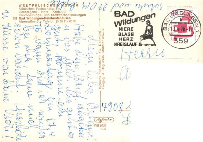 73915227 alte Postkarte Reinhardshausen Bad Wildungen Westfaelischer Hof Klinisches Fachsanatorium Fliegeraufnahme postalisch gelaufen Erhaltung siehe scans [FriedD77] KatCode: 11110006635003