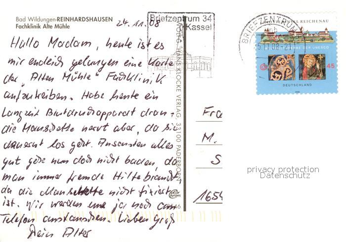 73204193 alte Postkarte Reinhardshausen Fachklinik Alte Muehle postalisch gelaufen Erhaltung siehe scans [NatalD47] KatCode: 11110006635003