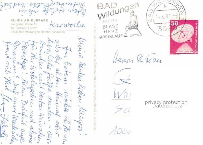 72904705 alte Postkarte Reinhardshausen Klinik am Kurpark postalisch gelaufen Erhaltung siehe scans [AndreD76] KatCode: 11110006635003