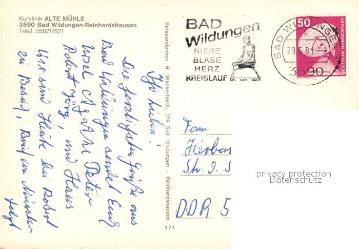 73126771 alte Postkarte Reinhardshausen Kurklinik Alte Muehle postalisch gelaufen Erhaltung siehe scans [KathaD81] KatCode: 11110006635003