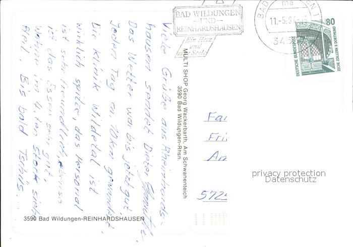 72508530 alte Postkarte Reinhardshausen Kurklinik Wildetal Schwanenteich Fontaine Promenade Blumenbeet postalisch gelaufen Erhaltung siehe scans KatCode: 11110006635003