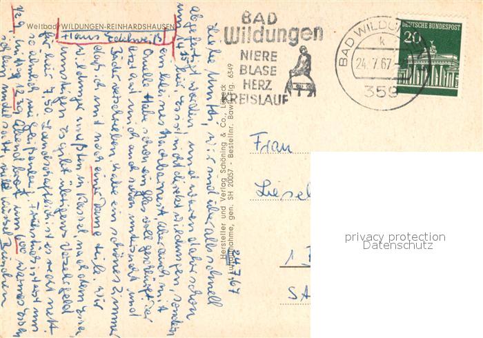 73705360 alte Postkarte Reinhardshausen Kurort postalisch gelaufen Fliegeraufnahme Erhaltung siehe scans [FriedD77] KatCode: 11110006635003