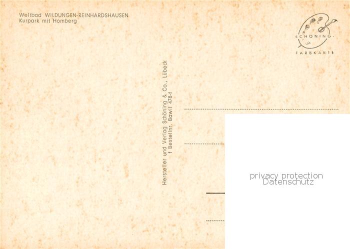 73813070 Reinhardshausen Kurpark mit Homberg postalisch nicht gelaufen Erhaltung siehe scans [FriedD77] KatCode: 11110006635003