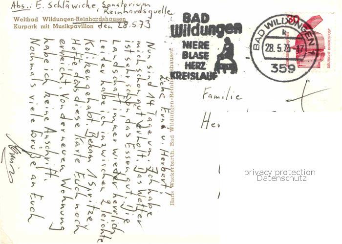 72917616 alte Postkarte Reinhardshausen Kurpark mit Musikpavillon postalisch gelaufen Erhaltung siehe scans [FriedD77] KatCode: 11110006635003