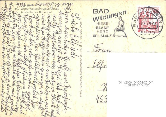 72135899 alte Postkarte Reinhardshausen Kursanatorium Hartenstein postalisch gelaufen Erhaltung siehe scans KatCode: 11110006635003
