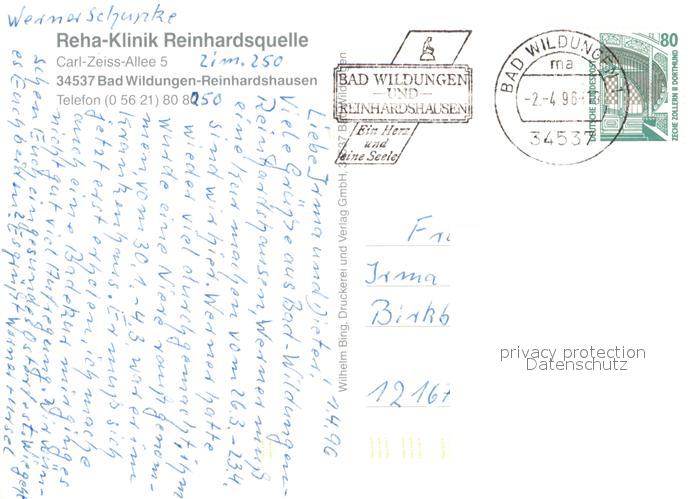 73090402 alte Postkarte Reinhardshausen Reha-Klinik Reinhardsquelle postalisch gelaufen Erhaltung siehe scans [NatalD47] KatCode: 11110006635003