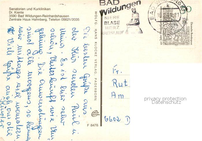 73826310 alte Postkarte Reinhardshausen Sanatorien und Kurkliniken Haus Hahnberg Haus Waldeck Haus Woelftetal postalisch gelaufen Erhaltung siehe scans [WerneD78] KatCode: 11110006635003