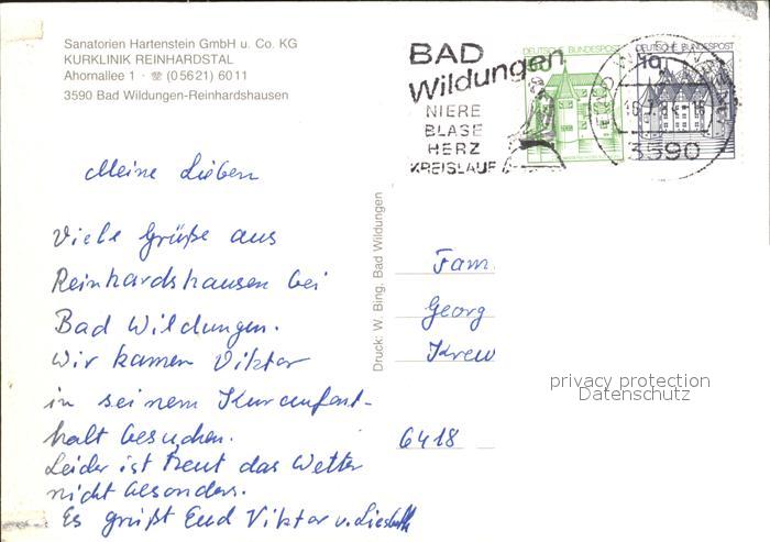 72108039 alte Postkarte Reinhardshausen Sanatorium Hartenstein Kurklinik Reinhardstal postalisch gelaufen Erhaltung siehe scans KatCode: 11110006635003