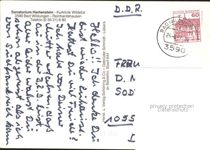 72228137 alte Postkarte Reinhardshausen Sanatorium Hartenstein Kurklinik Wildetal Hallenbad postalisch gelaufen Erhaltung siehe scans KatCode: 11110006635003