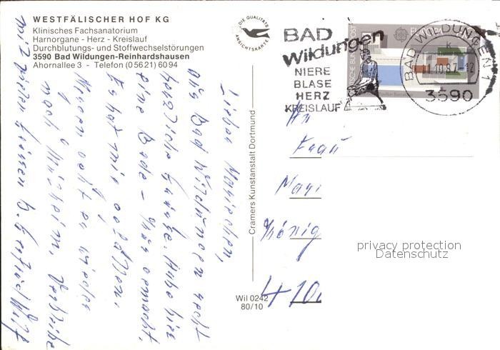 72016969 alte Postkarte Reinhardshausen Sanatorium Westfaelischer Hof postalisch gelaufen Erhaltung siehe scans KatCode: 11110006635003
