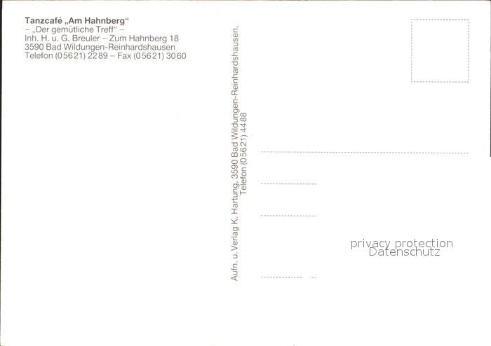 72032739 Reinhardshausen Tanzcafe Am Hahnberg Bar Biergarten postalisch nicht gelaufen Erhaltung siehe scans KatCode: 11110006635003