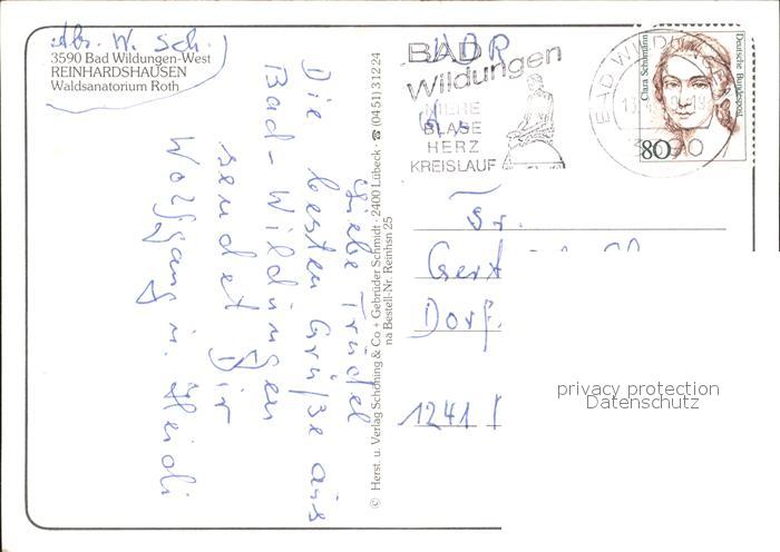 72016755 alte Postkarte Reinhardshausen Waldsanatorim Roth Baad-Wildungen postalisch gelaufen Erhaltung siehe scans KatCode: 11110006635003