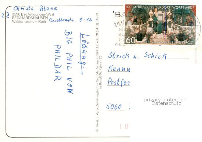 73830022 alte Postkarte Reinhardshausen Waldsanatorium Roth postalisch gelaufen Erhaltung siehe scans [WerneD78] KatCode: 11110006635003