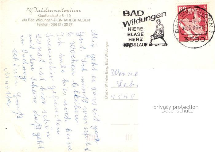 72931136 alte Postkarte Reinhardshausen Waldsanatorium postalisch gelaufen Erhaltung siehe scans [KathaD81] KatCode: 11110006635003