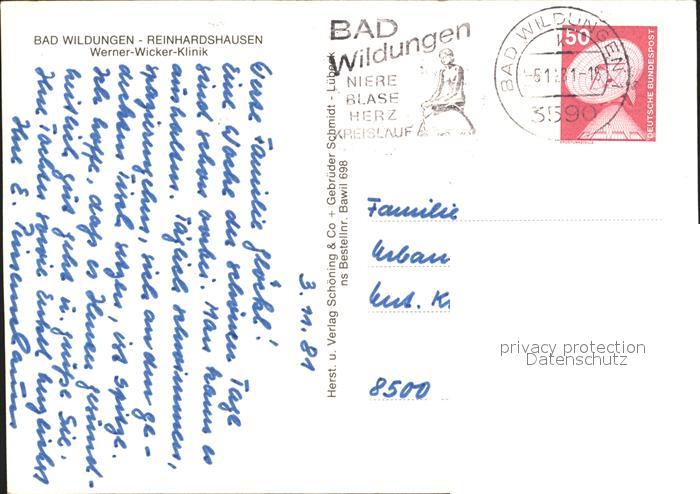 72284929 alte Postkarte Reinhardshausen Werner-Wicker-Klinik postalisch gelaufen Erhaltung siehe scans KatCode: 11110006635003