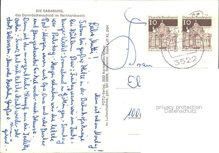 72580268 alte Postkarte Reinhardswald Sababurg Dornroeschenschloss postalisch gelaufen Erhaltung siehe scans [KathaD79] KatCode: 11110006633013