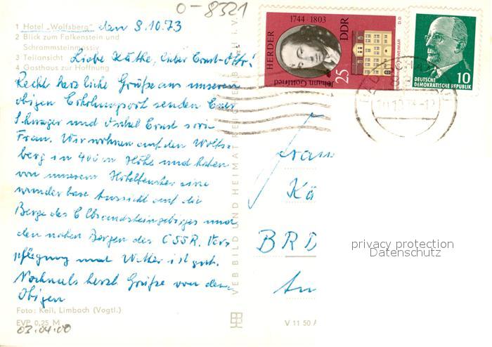 73046116 alte Postkarte Reinhardtsdorf Bad Schandau Hotel Wolfsberg Falkenstein Schrammsteinmassiv Gasthaus postalisch gelaufen Erhaltung siehe scans [KathaD81] KatCode: 11110014287330