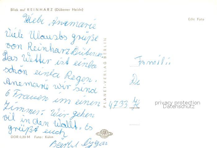 73081112 Reinharz Duebener Heide Blick ueber die Wiesen Ortsansicht mit Kirche postalisch nicht gelaufen Erhaltung siehe scans [FriedD77] KatCode: 11110015091020