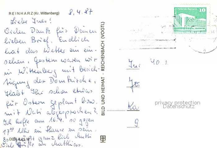 72727931 alte Postkarte Reinharz Duebener Heide Genesungsheim Freundschaft postalisch gelaufen Erhaltung siehe scans [FriedD77] KatCode: 11110015091020