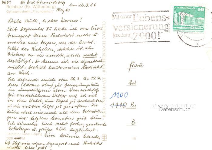73787788 alte Postkarte Reinharz Duebener Heide Genesungsheim Freundschaft postalisch gelaufen Erhaltung siehe scans [WerneD78] KatCode: 11110015091020