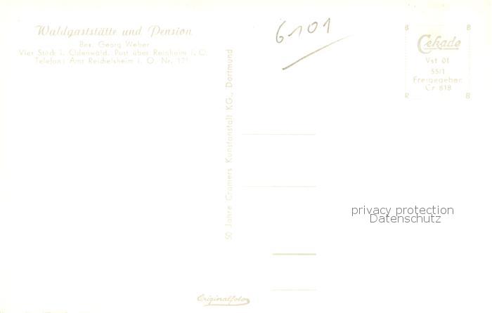 73783632 Reinheim Odenwald Fliegeraufnahme Waldgaststaette u. Pension postalisch nicht gelaufen Erhaltung siehe scans [LiesaD40] KatCode: 11110006432019