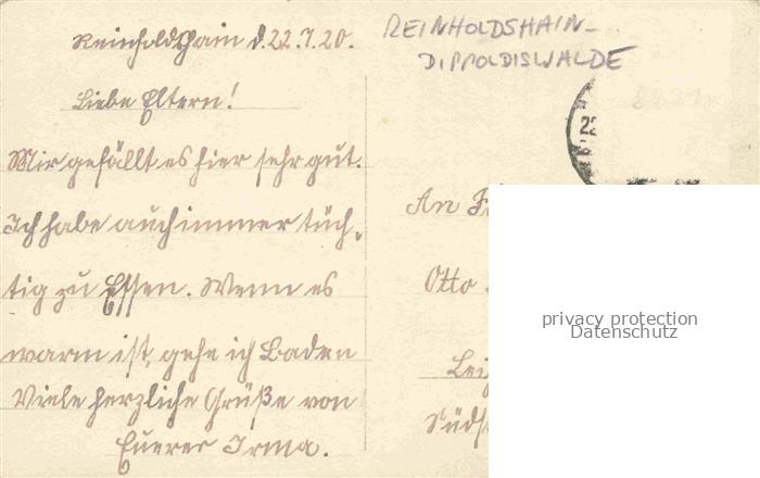 74026121 alte Postkarte Reinholdshain Dippoldiswalde Sachsen Wohnhaus postalisch gelaufen Erhaltung siehe scans [WerneD78] KatCode: 11110014290080