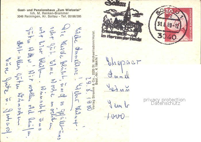 72543617 alte Postkarte Reiningen Wietzendorf Gasthaus Zum Wietzetal Gastraeume Bar postalisch gelaufen Erhaltung siehe scans [WerneD78 kv016box] KatCode: 11110003358023