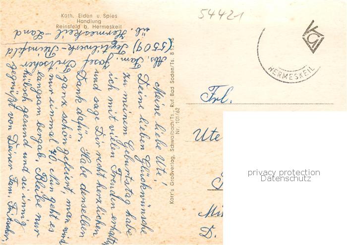73858325 alte Postkarte Reinsfeld Hunsrueck Panorama Teilansichten Kirche postalisch gelaufen Erhaltung siehe scans [FriedD77] KatCode: 11110007235114