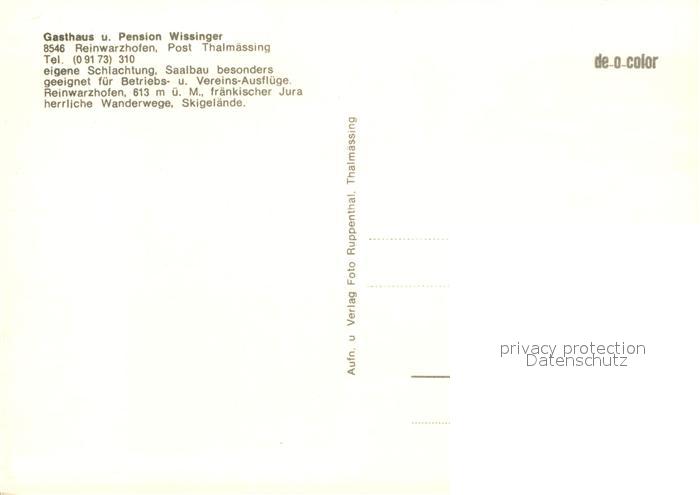 73167471 Reinwarzhofen Mittelfranken Gasthaus Pension Wissinger postalisch nicht gelaufen Erhaltung siehe scans [KathaD81] KatCode: 11110009576148