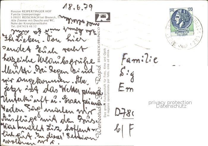 old postcard Reischach Bruneck Pension Reipertinger Hof postalisch gelaufen Erhaltung siehe scans