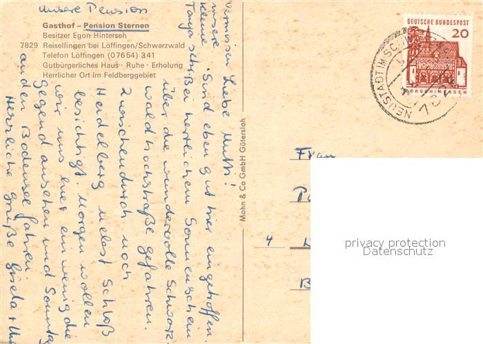 73569240 alte Postkarte Reiselfingen Gasthof-Pension Sternen postalisch gelaufen Erhaltung siehe scans [PaolaD17] KatCode: 11110008315070