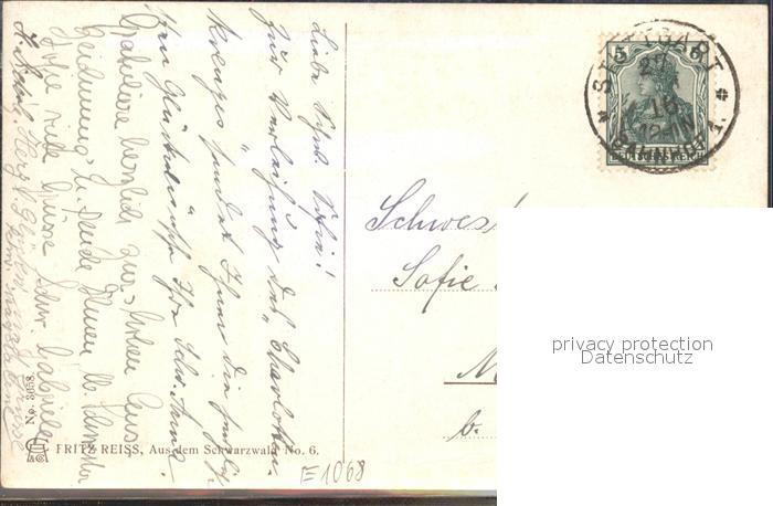 alte Postkarte Reiss Fritz Aus dem Schwarzwald Nr. 6 Schwarzwaldhaus postalisch gelaufen Erhaltung siehe scans