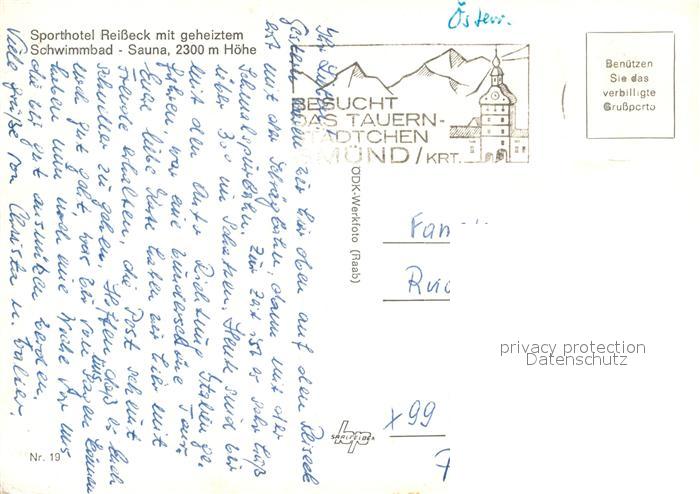 73516654 alte Postkarte Reisseck Kaernten Sporthotel Winter postalisch gelaufen Erhaltung siehe scans [KathaD81] KatCode: 11390212020644