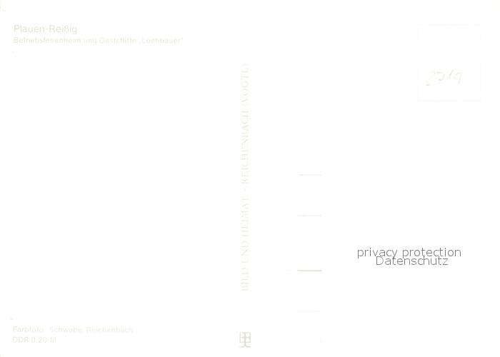 73152683 Reissig Plauen Betriebsferienheim und Gaststaette Lochbauer postalisch nicht gelaufen Erhaltung siehe scans [FriedD77] KatCode: 11110014166000