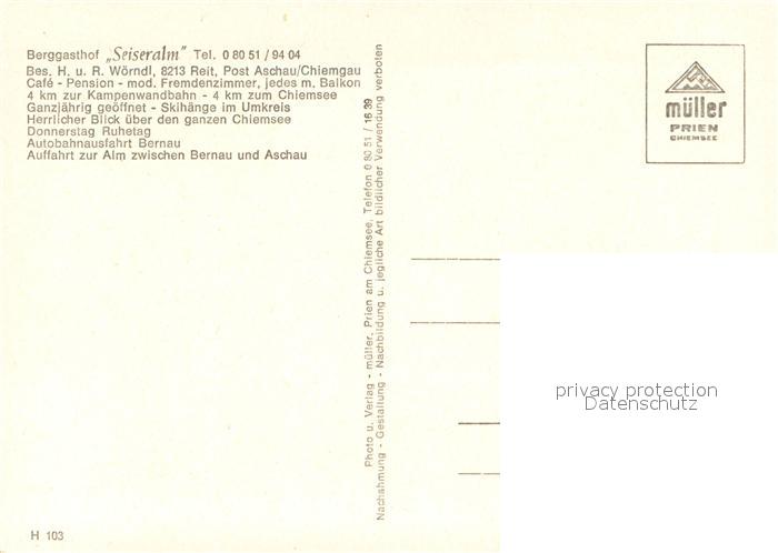 73653369 Reit Aschau Chiemgau Berggasthof Seiseralm Chiemsee Kampenwand Gastraum postalisch nicht gelaufen Erhaltung siehe scans [WerneD78] KatCode: 11110009183113